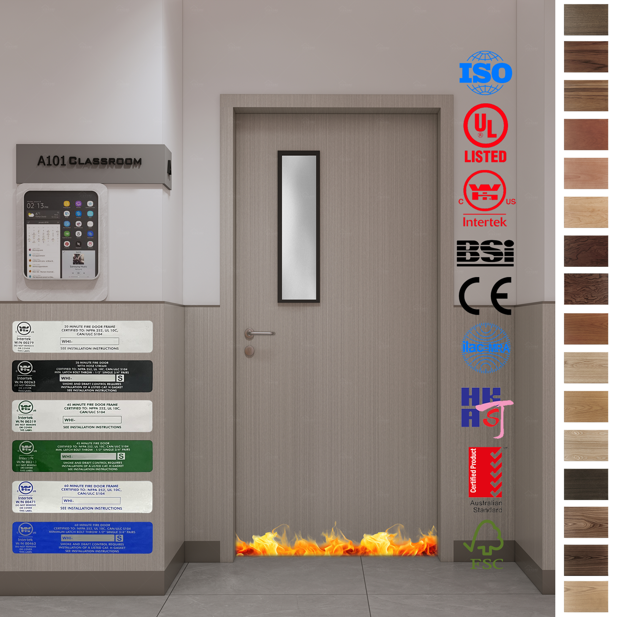 2025 China High Quality EN CE BS Certified MDF Wood Fire Prevention Door for School Classroom