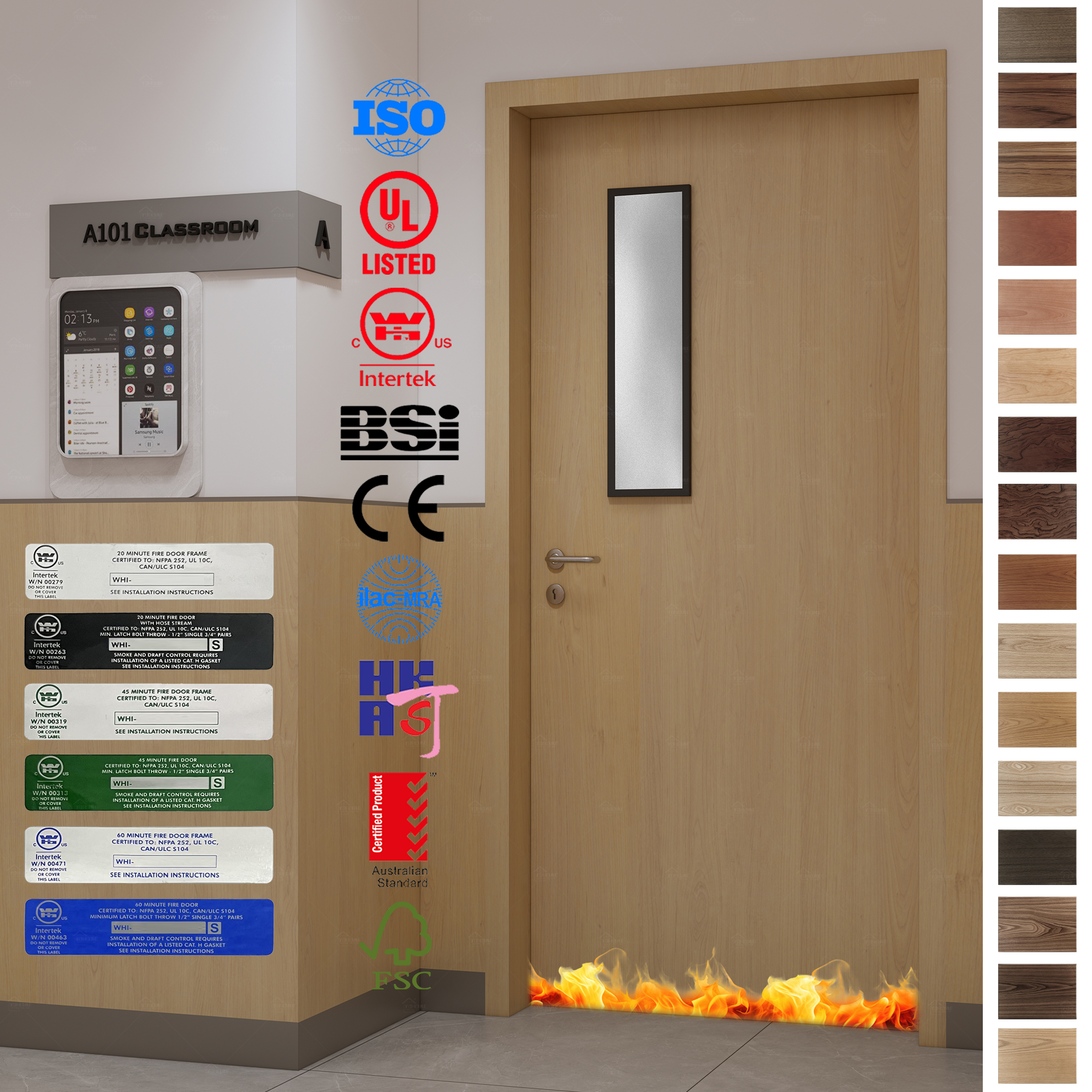 Our wooden fire rated doors undergo rigorous testing and certification to ensure their safety and reliability in the event of a fire. Specific certifications include: