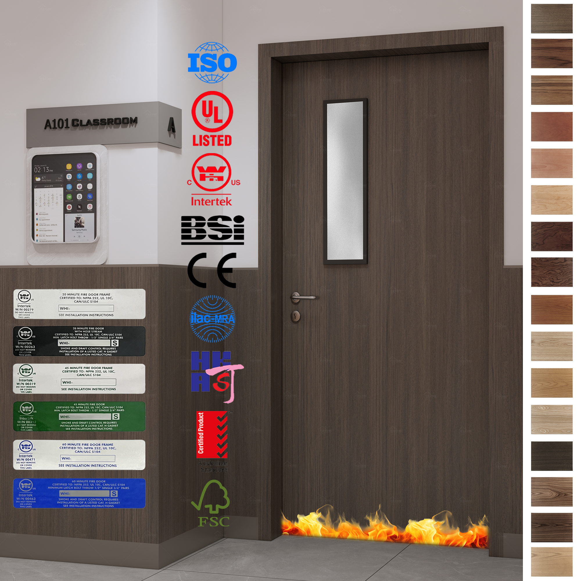 China Top Door Factory United Kingdom Approved PAS24 EI30 EI60 EI90 HPL School Classroom Wood Fire Rating Door