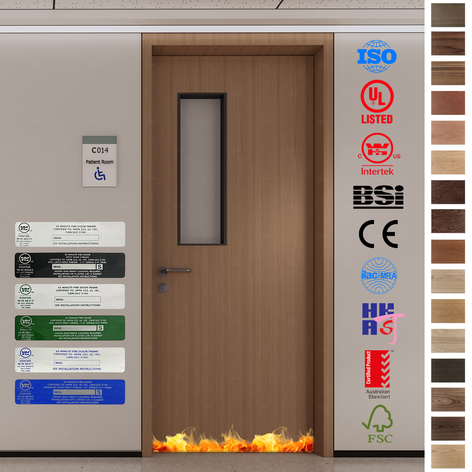 Our wooden fire rated doors undergo rigorous testing and certification to ensure their safety and reliability in the event of a fire. Specific certifications include: