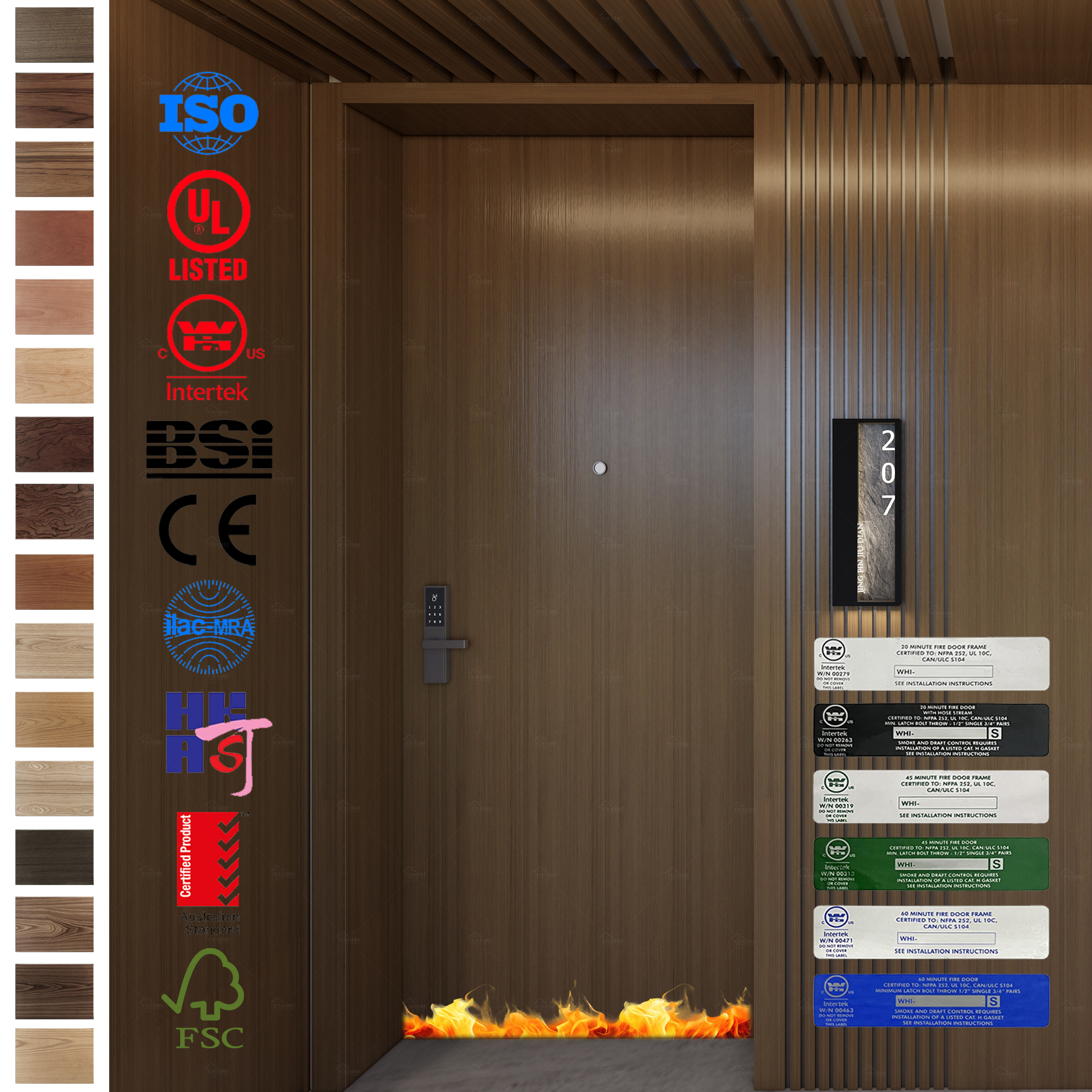 Our wooden fire rated doors undergo rigorous testing and certification to ensure their safety and reliability in the event of a fire. Specific certifications include:
