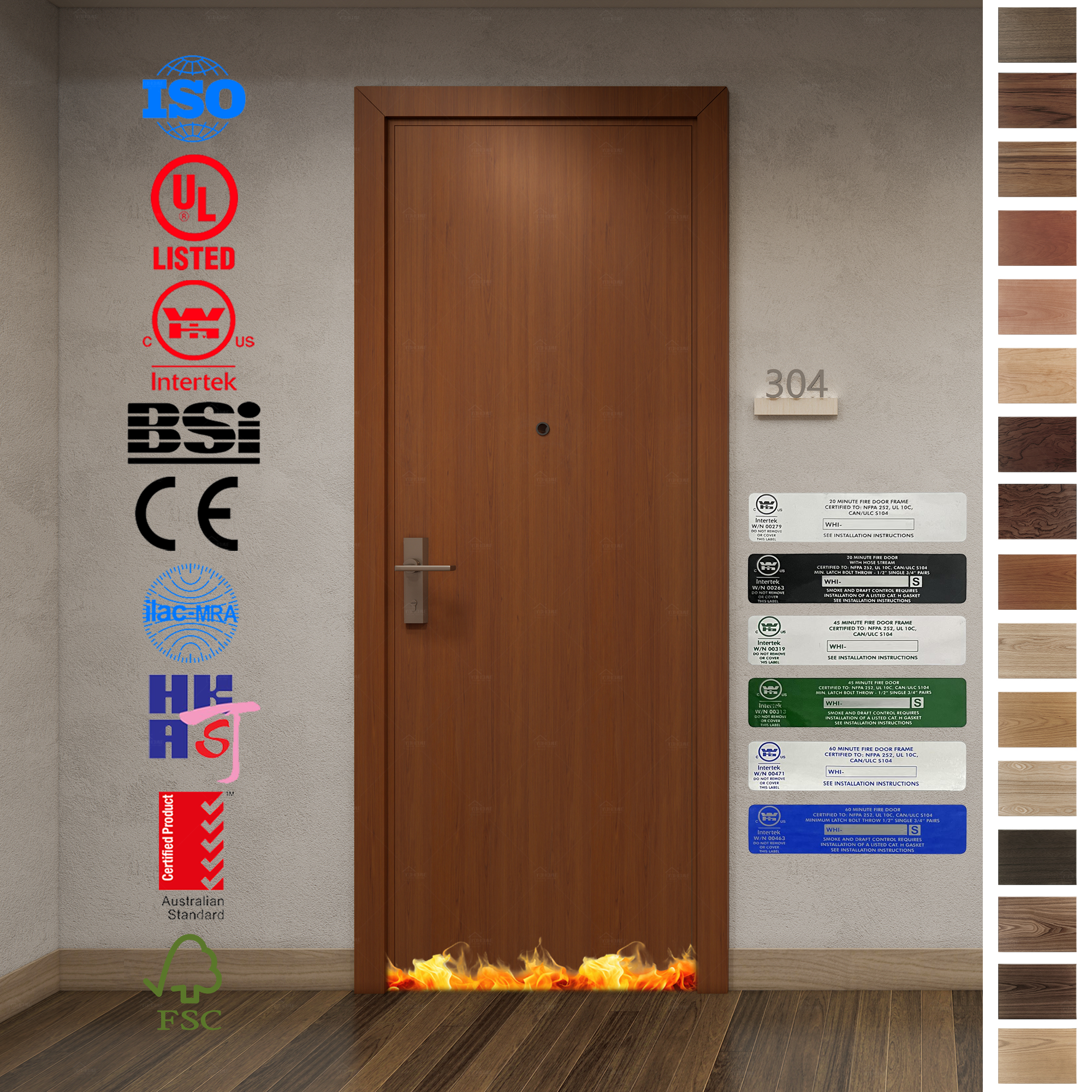 Our wooden fire rated doors undergo rigorous testing and certification to ensure their safety and reliability in the event of a fire. Specific certifications include: